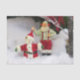 Photo d'un Père Noël qui construit un bonhomme de neige. Ce papier de tissu peut être utilisé non seulement pour l'emballage des cadeaux, mais aussi pour le découpage et le papier artisanal.