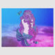 Papier cadeau en tissu avec l'image d'une sirène assise sur le sable sous la mer dans les couleurs du bleu et du violet.
