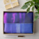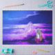 Tissu cadeau et papier découpage avec l'image d'une mer la nuit avec des vagues qui s'écrasent sur la plage et une sirène assise sur un rocher.