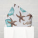 Papier en tissu de Noël avec étoiles de mer et ornements design. Des étoiles de mer Brown et des ornements bleu aqua sur le papier blanc font un motif de Noël tropical amusant et correspond à notre papier d'emballage. Choisissez votre format préféré de papier de mouchoir.