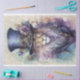 Portrait de lion mâle majestueux au design steampunk. Les teintes violet/lilas complètent le look grungy. Découpez-le sur un meuble ancien ou surprenez vos proches avec un cadeau si vous l'utilisez comme papier de mouchoir.