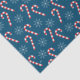 Un papier de tissu bleu océanique avec le motif de sucres de canne et de flocons de neige. Ce design est également disponible en rose et vert. © ArianeC Illustrations-Tous droits réservés