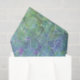 Une vision moderne du milieu du siècle moderne : des formes atomiques qui se chevauchent et qui recouvrent un crosshatch numérique dans des verts vifs et des bleus frais.
