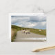 Carte postale de quelques moutons sur une route goudronnée dans la campagne irlandaise avec une barre de décoloration et le texte : "Irlande".