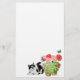 Design d'art original de Moxie le chat observant des papillons sur des plantes de géranium par la designer Carolyn McFann de Two Purring Cats Studio sur papeterie personnalisable.