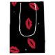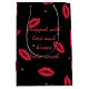 Ajoutez votre texte et envoyez avec amour. Beaucoup de baisers aléatoires en rouge à lèvres sur un arrière - plan noir avec des pois