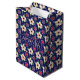 Moyen Bleu de marine avec Fleurs de crème Sac cadeau