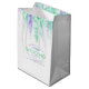 Sacs cadeau en cascade de fleurs vertes et violettes faisant partie de la série de mariages nuptiales en cascade assortis. Idéal pour les cadeaux de mariage et les sacs de faveur pour les invités. Personnalisez avec vos propres noms et message de remerciement. Texte personnalisable à l'avant et à l'arrière. Art floral original aquarelle et design par Sarah Trett pour www.mylittleedenweddings.com sur zazzle.