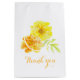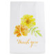 Montrez votre appréciation à vos mariages avec ce sac cadeau de faveur de mariage. Parfait pour remplir avec un cadeau spécial pour montrer votre appréciation. Partie de l'aquarelle Jaune orange Marigolds mariage d'art. Uniquement peint et dessiné par Sarah Trett.