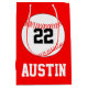 Joueur sur mesure de la fête de baseball Nom, Numéro & Couleur Sac cadeau : Un grand sac cadeau personnalisable pour les joueurs de baseball! Personnalisez-le en tapant le nom du joueur et le numéro de maillot dans les zones de texte personnalisées. Cliquez ensuite sur le bouton [PERSONNALISER] et utilisez le sélecteur de couleurs pour trouver la correspondance parfaite avec la couleur de votre équipe de baseball. C'est parfait pour des fêtes de baseball et des banquets !