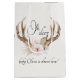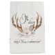 Enveloppez vos cadeaux de baby shower ou vos faveurs dans le charme boisé avec ce sac cadeau "Oh Deer" à l'aquarelle, avec une illustration de cerf doux encadrée de fines fleurs de rougeurs et de bois rustiques. Que vous remerciiez les clients ou que vous fassiez un cadeau spécial à la future maman, ce sac d'inspiration boho ajoute une touche soignée et élégante à votre célébration. Associez-le à un décor assorti pour un thème boisé cohésif, chaleureux, fantaisiste et joliment coordonné.