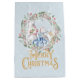 Beau sac cadeau de Noël avec notre trio d'ours polaires assis à l'intérieur d'une couronne de Noël et courageux, en lettres d'or souhaitant au récipiendaire un Joyeux Noël en bas.