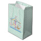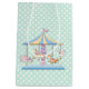 Sac orienté de cadeau de joli bébé fait en vert de menthe avec le pois blanc et les graphiques mignons d'un carrousel animal d'enfants colorés. Customisez pour ajouter le texte. Le papier de soie de soie coordonné est disponible.