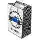Blue Racing Car À damiers Motif Design Sac cadeau avec texte personnalisable.