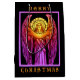 Un ange en vitrail dramatique, aux couleurs joyeuses avec un halo doré, annonce l'avènement de Noël.