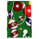 Au 19ème siècle, une salle de billard était un salon de paris hippique. Des tables de billard ont été installées pour que les parieurs puissent passer du temps entre les courses de chevaux. Billards, ou pool, est le descendant d'un jeu similaire au croquet qui a été joué dans l'Europe du 15ème siècle. Bien que nous ne soyons pas sûrs, on soupçonne fortement que des billards soient venus en Amérique avec des colons hollandais et anglais. Dans les années 1700, des ébénistes compétents fabriquaient de belles tables, mais l'équipement était, sinon, assez primitif. Un bassin de 15 balles est arrivé sur les lieux à la fin des années 1800 et a gagné en popularité dans les années 1940. Billiards a été ressuscité en 1961 avec la sortie du film THE HUSTLER. Il a connu une nouvelle vague au milieu des années 1980 avec la sortie de la suite du film, COLOR OF MONEY. Depuis, il y a eu une évolution des environs où nous trouvons des billards — ils sont dans les restaurants, les boîtes de nuit et les bars sportifs, permettant à la piscine de trouver un public moderne et de nouvelles générations d'amateurs. Ce design merveilleux est des couches de billiards de tailles différentes pour une plus grande profondeur. Elles sont disséminées sur un fond "feutre vert". Ce fabuleux sac cadeau est un choix idéal pour la Fête des pères ou pour toute occasion célébrant votre requin de piscine préféré.