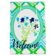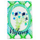 Sacoche cadeau de bienvenue avec bleu marine design floral accentué en vert turquoise et citron vert, arrière - plan blanc peut être commuté à n'importe quelle couleur, et le texte de bienvenue peut être personnalisé à n'importe quel message ou texte est amovible, différentes options de taille disponibles.