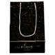 Sac cadeau d'anniversaire élégant, classique, glamour et féminin. Un ruban doré à la parties scintillant dorée et brillant, un peu de bling et de luxe pour un anniversaire. Arrière - plan noir. Avec le texte : Joyeux 30ème anniversaire ! Customisez-le avec le vôtre.