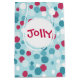 Des pois festifs, bleus et rouges décorent ce sac cadeau de vacances Jolly. Ce sac est parfait pour tous les âges. Le design est issu de l'art original.