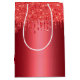 Ce sac cadeau en papier étincelant a une base rouge festive métallique fausse feuille, avec des gouttes de parties scintillant rouge fondue qui se déversent du haut