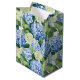 Ce sac cadeau tout-occasion est présenté dans une belle impression florale d'hydrangée. Impression sous licence affichée brillante