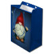 Une jolie photo d'un gnome habillé de rouge et de vert, brandissant, est présentée sur l'avant et l'arrière de ce sac cadeau de Noël. C'est une façon douce de donner des petits cadeaux à la famille et aux amis pour les vacances!