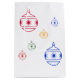 Des ornements ronds pour arbre de vacances, deux grands et quatre petits, de chaque côté. Les couleurs des globes individuelles sont le bleu, le vert, le rouge, l'orange.