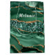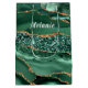Moyen Sac Cadeau Paillettes Or Vert Emeraude avec Nom Pe
