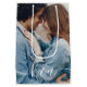 Félicitez un couple spécial avec ce ravissant sac cadeau photo personnalisé ! Parfait pour les mariages, les enterrements de vie de jeune fille et les fiançailles ! Ils feraient également de superbes sacs cadeaux d'hôtel pour les invités de mariage !