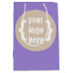 Moyen Sac Cadeau Promotionnel Violet Uni avec Logo Blanc