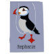 Sac cadeau Puffin Design avec couleur arrière - plan personnalisable et personnalisation optionnelle.