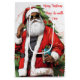 Sac cadeau de Noël afro-américain - Joyeux Sac cadeau de Noël moyen Apportez une touche de style à vos célébrations de Noël avec ce sac cadeau unique afro-américain! Doté d'un Père Noël cool habillé de rouge classique avec une longue barbe blanche, de lunettes de soleil et tenant le livre coquin et gentil, ce design ajoute une touche moderne à votre cadeau de vacances. L'arrière - plan comprend un sapin de Noël joliment décoré, des ornements et une typographie élégante souhaitant "Joyeux Noël" et "Paix sois avec toi". Parfait pour tout échange de cadeaux de vacances ou comme un sac spécial pour les proches.