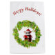 Cadres de couronne de Noël AI généré image de souris dans le costume Père Noël. Le texte courbe ci-dessus est rouge avec une ombre portée et dit "Joyeuses fêtes !"