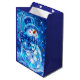Un sac cadeau magnifiquement conçu orné de la scène enchanteresse d'un bonhomme de neige brillant lors d'une nuit d'hiver sereine. Le design du sac est illustré d’une illustration vibrante du bonhomme de neige, avec un chapeau et un foulard, au milieu d’un paysage enneigé. L'arrière - plan est un mélange de bleus profonds et de blancs croustillants, évoquant le froid d'une soirée d'hiver. Ce sac cadeau serait parfait pour présenter des cadeaux de vacances, ajoutant une couche supplémentaire de magie et de plaisir à l’expérience du récipiendaire. J'adore ! Pouvez-vous décrire un autre type de sac cadeau? Merci pour