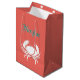 Le beau sac de corail de cadeau folâtre un crabe blanc et leur nom en turquoise d'un côté, et votre liaison message de la coutume 3 de l'autre. A conçu pour coordonner avec le papier de soie de soie de corail personnalisé d'impression de crabe, et le plateau en verre rond de bibelot de crabe de corail et de turquoise (tout vendu séparément)
