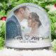 Calligraphy Heart Mr. and Mrs. Wedding Photo couple Romantic Newlywed Snow Globe, Celebrate your forever with this romantic Mr & Mrs wedding snow globe featuring your couple’s photo framed by a delicate calligraphy heart design. The perfect keepsake to remember your special day, this globe is fully customizable, add your photo on the front, and personalize the back with Just Married and your wedding date. Whether displayed on a mantle or gifted to newlyweds, it’s a timeless token of love, joy, and commitment.