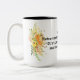 Mug. La tasse est grande, blanche avec garniture noire et jolies fleurs jaunes. Les mots sur la tasse peuvent être changés. Merci à Creative Fabrica pour certains des éléments du design.