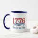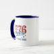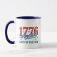Celebrate this extra special milestone Independence day with an anniversary mug! This mug features the year 1776 in bold red letters with navy blue lettering that says "America land of the free." Perfect for celebrating the 250th anniversary of America.