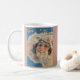 Belle fille, belle tasse. Notez que l'impression s'affiche sur les deux côtés de la tasse. Ce qui est bien. Notez aussi que ma boutique a des CENTAINES d'autres objets imprimés avec des bâches de musique ancienne. Voulez-vous voir plus vieux? Voici mon blog ! www.fullservicebohemian.blogspot.com