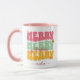 Typographie super rétro tasse de café de script personnalisable. Le design présente le texte "Joyeux Noël" en typographie super rose, verte et jaune avec des éléments floraux sur le thème du boho. Le nom peut être facilement customisé. Faites pour le meilleur cadeau personnalisé pour vous-même, vos amis, les membres de votre famille et même les voisins. Nous avons plus de 45 tasses de Noël en design rétro, aquarelle et drôle de typographie dans notre collection que vous aimerez certainement. Joyeux Noël!