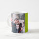1er anniversaire de la paroisse verte coeur personnalisé photo mug. Le design présente une typographie en caractères blancs sur vert avec vos noms et les mots célébration d'un an d'amour en caractères de style script et un coeur d'art en ligne. Personnalisez votre photo, vos noms et vos dates de mariage d'anniversaire. Le premier anniversaire mariage est associé au péridot vert en pierre de taille et le coeur symbolise l'amour. Autres cadeaux d'anniversaire mariage et articles de papier disponibles. Ligne art et design par www.mylittleeden.com sur zazzle.