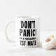 Cette délicieuse tasse blanche est accompagnée de l'expression "Ne paniquez pas ! Je suis un 1er Mate Professionnel.' Il est parfait pour ceux qui travaillent dans l'industrie maritime, que ce soit en mer ou au bureau, ce qui en fait un cadeau idéal pour les promotions ou juste pour égayer votre espace de travail.