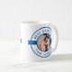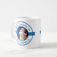 Commémorez sa première fête des pères avec cette tasse photo moderne bleue et blanche de 2. Avec un cercle rétro avec 'Best Daddy in the World', EST. et année, le design se répète à l'arrière, et chacun affiche une photo différente. Copyright Cadeaux photo personnalisés, tous droits réservés.
