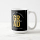 Bold Typography GRAD, Gold Faux Foil On Black, With Class Of 2026 White Handwriting Script, 8 Snapshot Photo Collage Graduation Latte Mug.