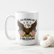Celebrate this extra special milestone Independence day with an anniversary mug! This mug features a bald eagle and two American flags along with lettering that says "250 years of freedom" Perfect for celebrating the 250th anniversary of America.