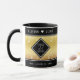 Célébrez le 27e anniversaire du mariage de musique avec cette tasse commémorative. Un élégant lettrage blanc avec des confettis de note musicale sur un arrière - plan en feuille d'or bordé de barres noires apporte une touche mémorable à cette occasion spéciale et à cette étape extraordinaire. Personnalisez avec les noms du couple et les années de mariage. Reverse affiche un design identique. Remarque : cette conception est optimisée pour les tasses de 11 oz. Design © W.H. Sim, Tous droits réservés. Voir plus sur zazzle.com/expressionsoccasions