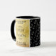 Célébrez le 27e anniversaire du mariage de musique avec deux ou trois de ces chopes élégantes! Un élégant lettrage noir avec des confettis de note musicale sur un arrière - plan en feuille d'or bordé de barres noires apporte une touche mémorable à cette occasion spéciale et à cette étape extraordinaire. Personnalisez avec les noms du couple, les dates du mariage et les messages de félicitations. Design © W.H. Sim, Tous droits réservés. Voir plus sur zazzle.com/expressionsoccasions