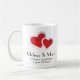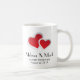 Une tasse à café commémorative mariage avec une illustration de 2 coeurs en papier se sont joints - rouge avec une bordure blanche.
