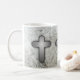 Trois croix d'argent sur un arrière - plan d'argent et blanc sur le café, le chocolat chaud, le thé et plus de tasses et tasses. Parfait pour votre ami spécial, enfilez des bonbons dans la tasse !