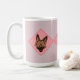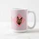 Savourez votre boisson préférée dans cette tasse avec trois visages de berger souriants reposant sur un arrière - plan de diamant rouge.
